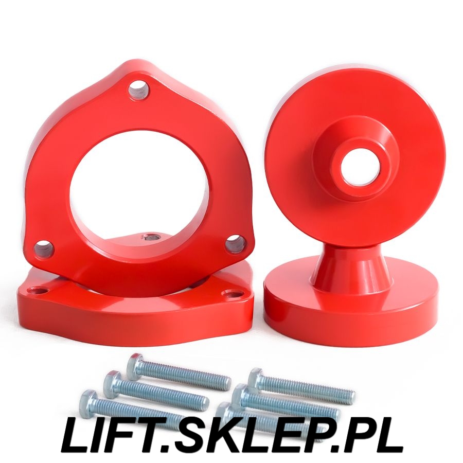 W skład zestawu wchodzą dystanse amortyzatorów i podkładki pod sprężyny,